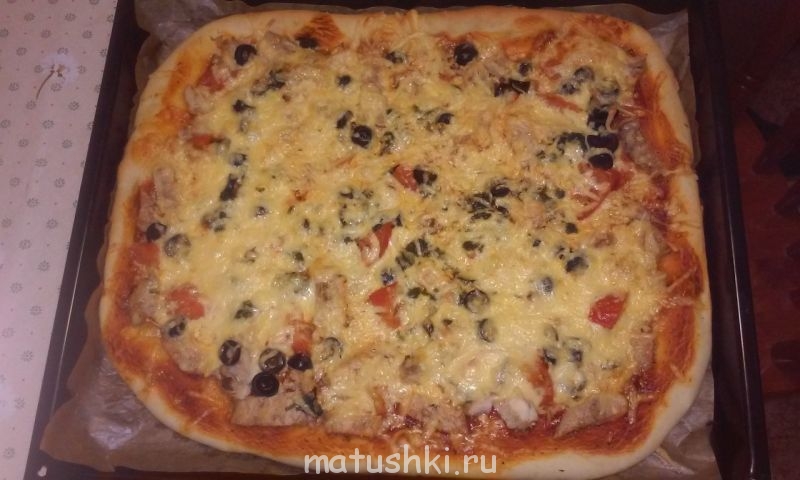 Я сегодня такую пиццу состряпала, ну просто супер, тесто тоненькое, начинки много, дети ели и нахваливали, обычно они тесто не едят, а здесь все умяли и добавки попросили.