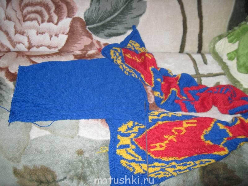 у меня рекорд, очень старалась успеть к 8 ноября с подарком для мужа, в результате схитрила: подарила шарф, но сказала, что его надо еще украсить и попросила еще немного времени. основной шарф я доделала, но так как это моя первая работа сзади некрасиво натянуты нитки (не знала, как надо правильно), да и с узором так сложно! поэтому решила просто связать синее полотно и сшить их крючком. как вам моя идея? полотно уже начала.