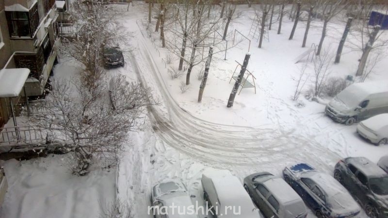 Тоже зима,снег хлопьями идет,сугробы. снег липкий -сейчас снеговик классный получиться.К первому мая ждем метель -это традиционно.