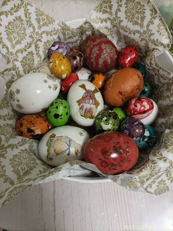 Мы тоже вчера украшали, попробовала в технике декупаж ,интересно получается