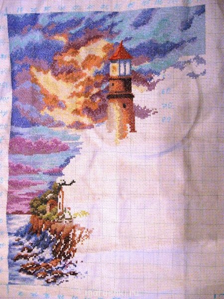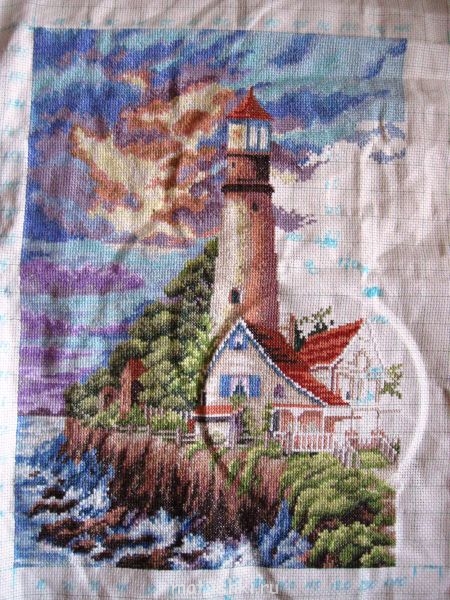 Девочки! дошила я пейзаж с маяком, и отдала не сфотографировав
