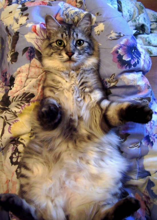 примерно так: В идеальном варианте еще и задние ноги вытянуты, но сейчас ей пузико мешает