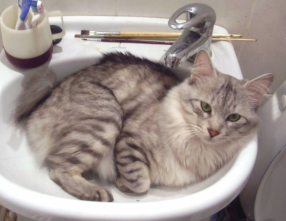 Мой кот в жару, постоянно лежал в раковине. И выгнать его оттуда было невозможно - только грубо скинуть. Кран открываем - тут же убирает свою тушку в сторонку и ... пииииить. Даже сильного напора не боялся.