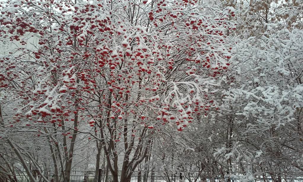 У нас как в сказе, деревья все белые - белые вчера шел снежок, а сегодня безветренно. За бортом 2 градуса, лужи со снегом. Детвора рада.