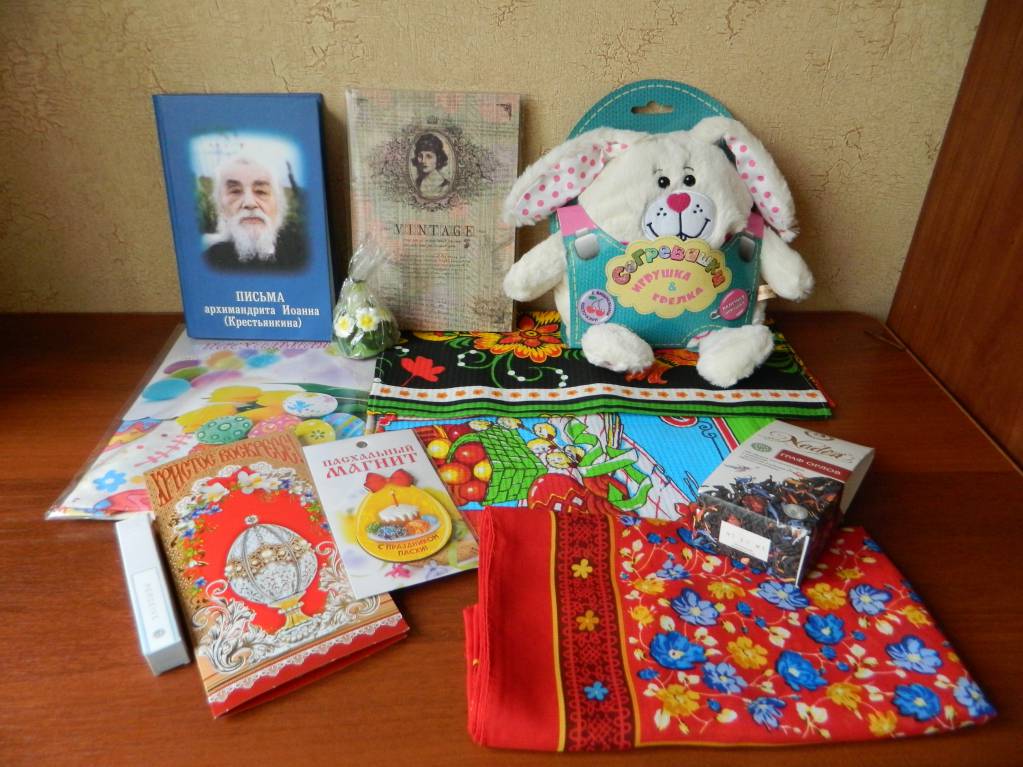 ),подарочный набор гель и мыло,духи, блокнот,книга"Письма архимандрита Иоанна( Крестьянкина)",платочек красненький праздничный,ароматнай(только сегодня думала,что надо приобрести