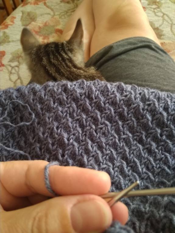 Эта фотография очень напомнила нашу Плюшу, она тоже любила вот так забираться под вышивку, или прям на клубки ложилась, и лежать рядышком с нами.