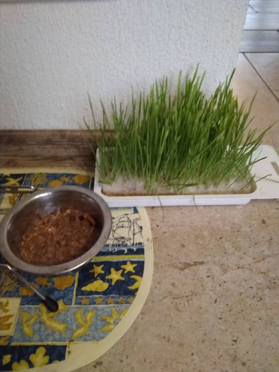 Не понимаю, что не так с травой?!!!Уличную рубают аки козлики, а к этой, такой густой, красивой,кошачьей, специально для них выращенной ни одна морда не прикоснулась!