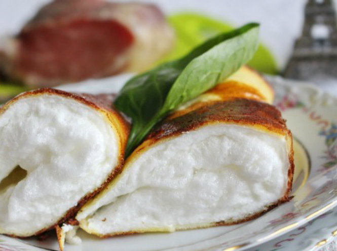 Отделите белки от желтков, белки поместите в посуду для взбивания. Желтки взбейте отдельно с несколькими ложками молока или сливок и щепоткой соли, не переусердствуйте, взбивайте не больше, чем для обычного омлета. Сковороду поставьте на средний огонь.