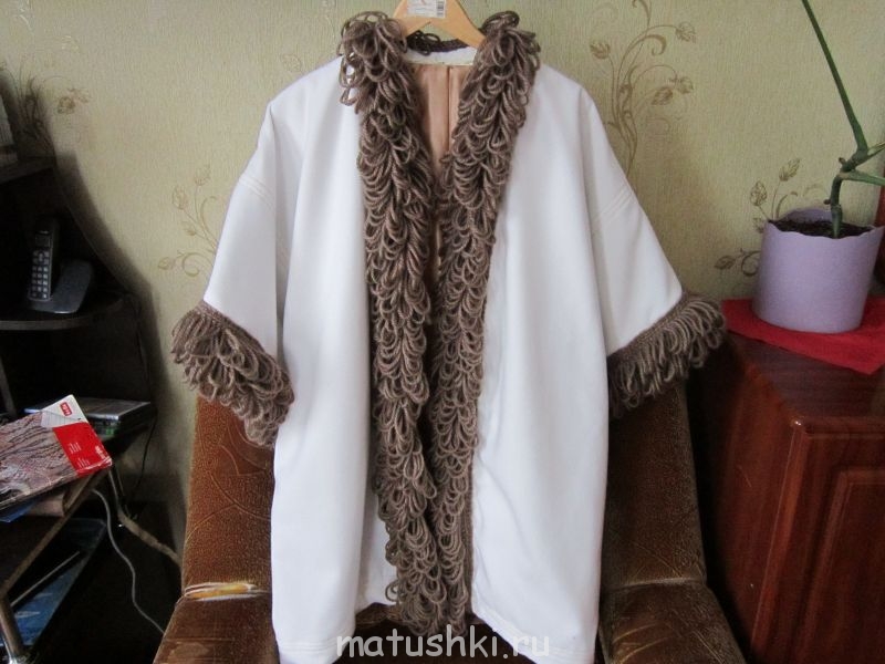 У меня назрела головная боль.Сшила я себе пальто по типу "кимоно",т.к. на эту весну мне подходит только свободный покрой.Ткань - кашемир гладкий молочного цвета.Рукав 2 трети,подразумеваются удлиненные перчатки.Сшила и показалось оно слишком белым и безликим.Я надумала и свялала отделку -"вязаный мех" из альпаки.Вот теперь мучаюсь,мне кажется,что выглядит слишком эпатажно.Может с рукавов убрать опушку,но они тогда недоделано смотрятся.