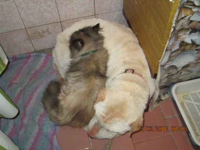 У меня осталась одна Айна.Нормально.Да и шарпеи с их охотничьим инстинктом вполне своих кошек терпели,не трогали. Зайка даже спала с Яшмой когда холодно было.Сейчас фотку поищу,была где то..
