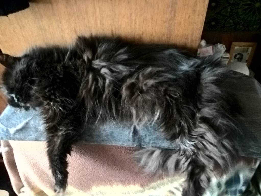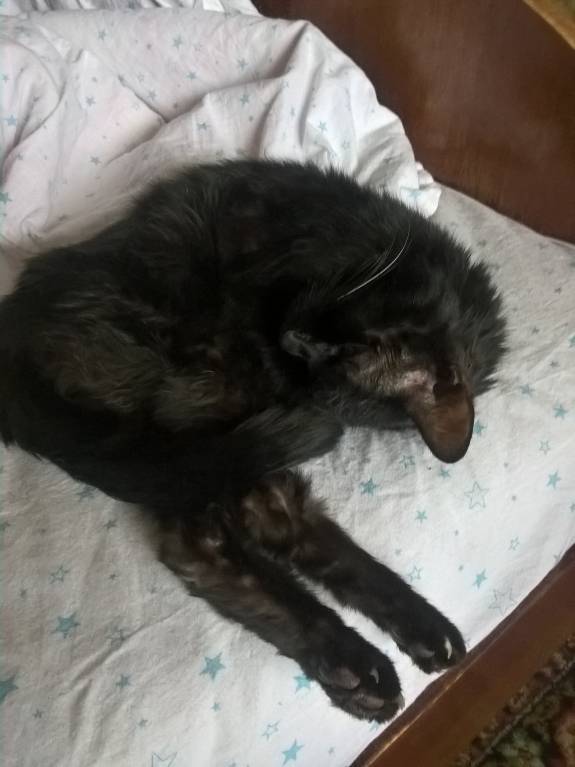 Мы сегодня от мамы вернулись с новой кошкой. Прибилась у них там к дому, кто кормит,а кто и гоняет и прибить обещает. Ласковая,молоденькая,не больше года. И очень на Чернику похожа