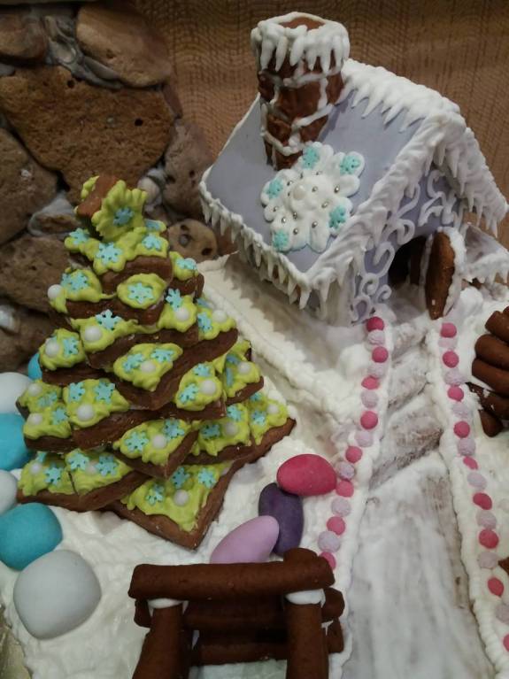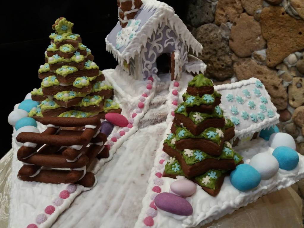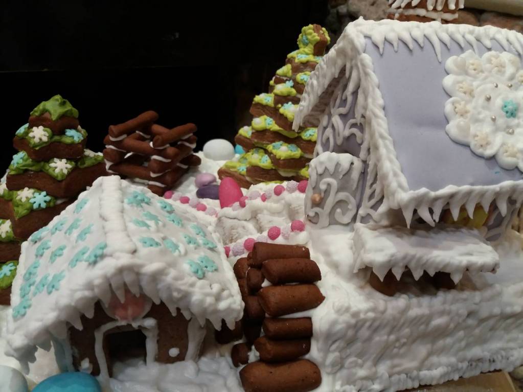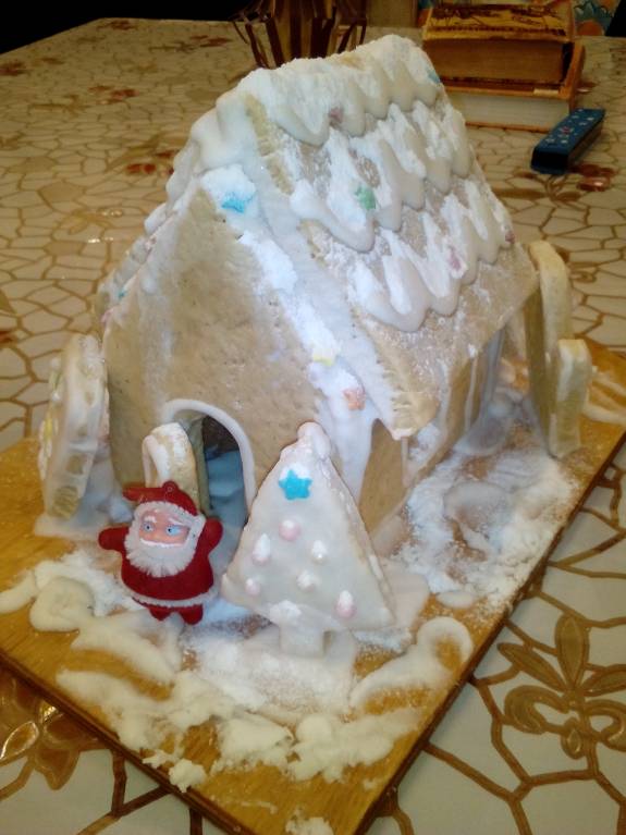 Решила я в этом году подготовиться к Рождеству по полной программе. Штоллен лежит в холодильнике, а в зале на столе теперь красуется вот такой пряничный домик.