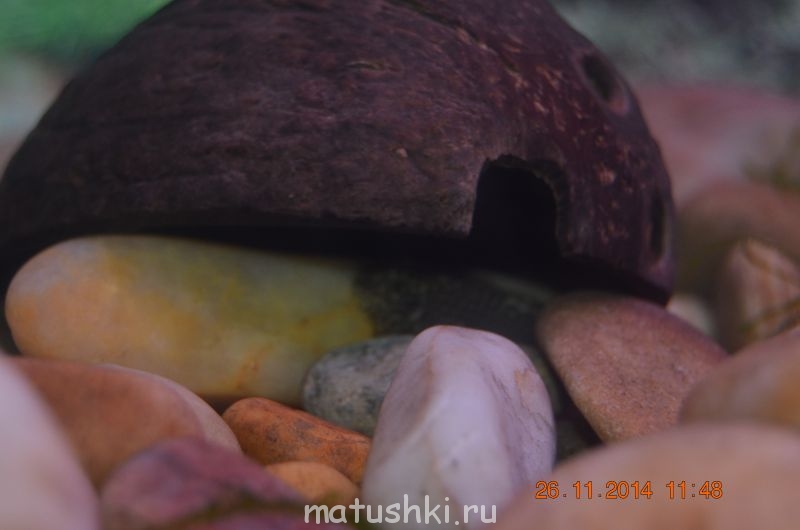 На первом фото один из борнео(так они здесь называются),очень хорошее у них зрение,пугливые(правда по желанию,если не хотят бояться,то бегают по стеклу аквариума и ничего им не мешает),сидит на камушке под кокосом,рядом чуть правее камушек с растаявшей не тронутой таблеткой. Очень жаль что весь фокус ушел на кокос,рыбку видно,но она слегка размыта(что-ли).Вчера в магазине,в нагрузку к рыбкам дали Яванский мох + пару дней назад купила один комочек Кладофора, что из этого получилось видно на остальных фото. Првда что из этого получиться,будет видно через месяц ...