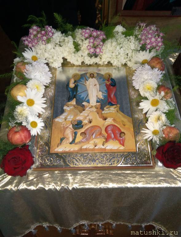 У нас вот так нынче икона украшена на Преображение! Скромно, по сельски, но красиво
