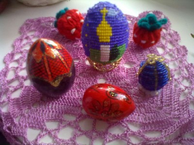 № 13 Пасхальные яйца (ручная роспись, бисер) и праздничные салфеточки