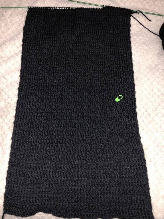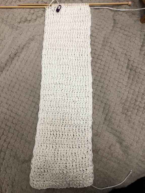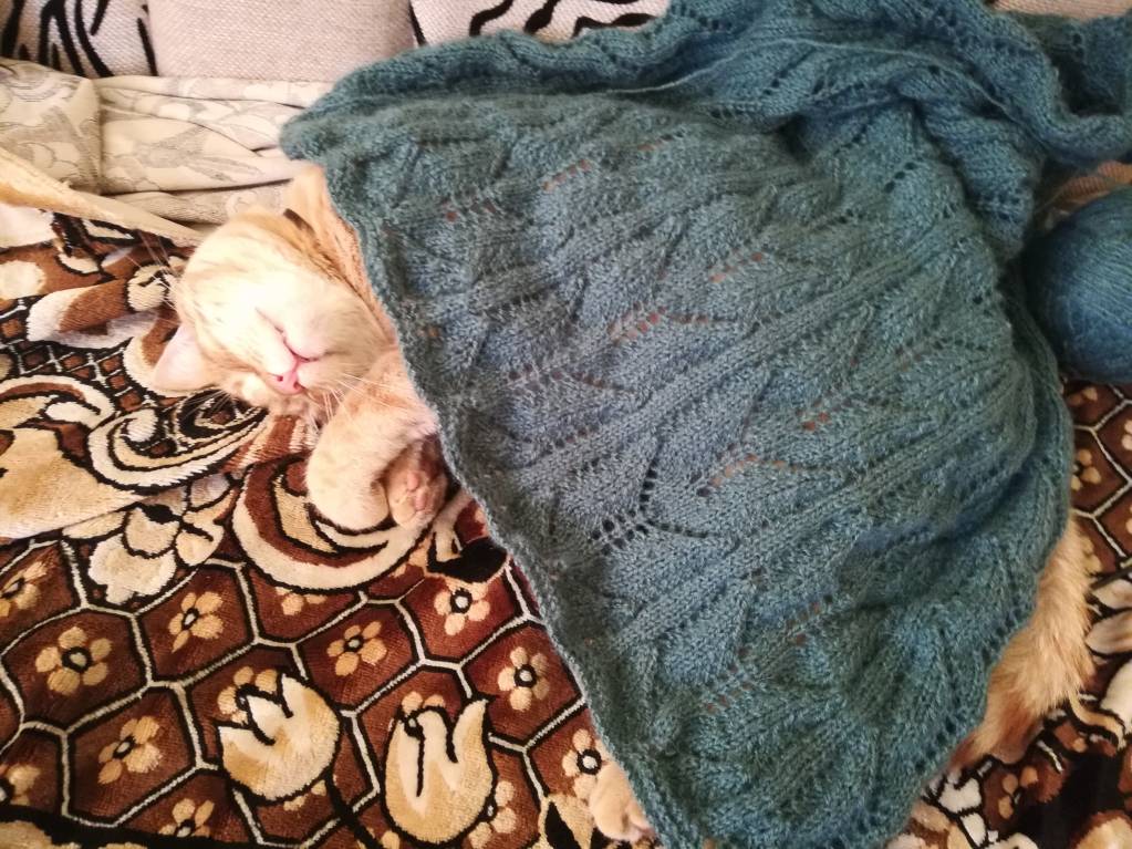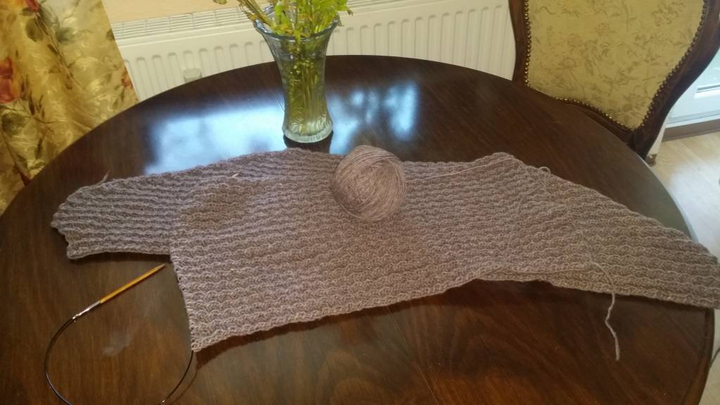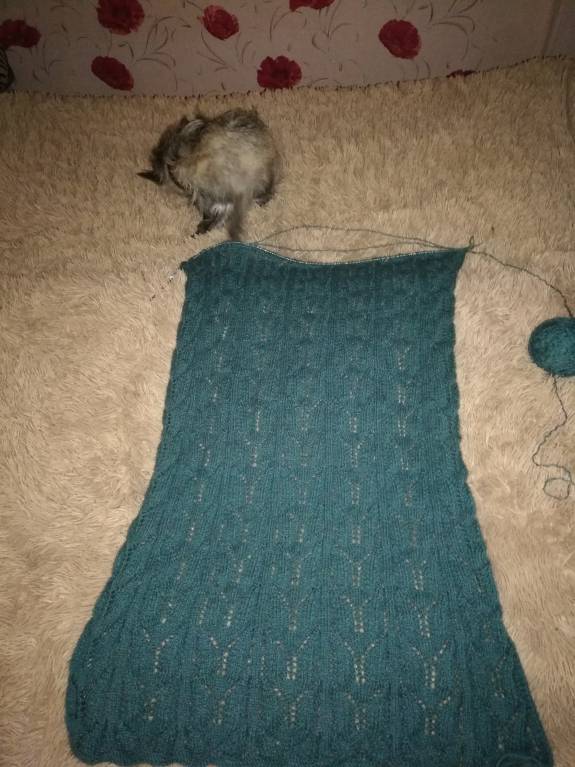 Я тоже с отчетом. Правда, у меня так сложилось, что пришлось все, что я связала за предыдущий этап, распустить до резинки. Маловат перед получился