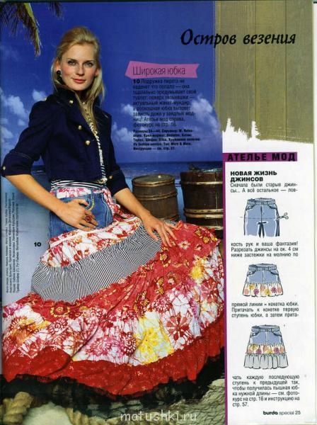 Девчата! Некогда вдаваться в подробности предложенных ссылок, но от себя лично могу сказать, что можно из джинсовых брюк сделать массу красивых юбочек. Если за основу взять верх - кокетку, то ниже - всё, что позволит фантазия ( из штанин - воланы, конусы, складки..... комбинировать джинсовые и ситцевые, и даже гипюровые воланы, конусы и рюши! ). Вот что душа хочет - то и ваять!!!!