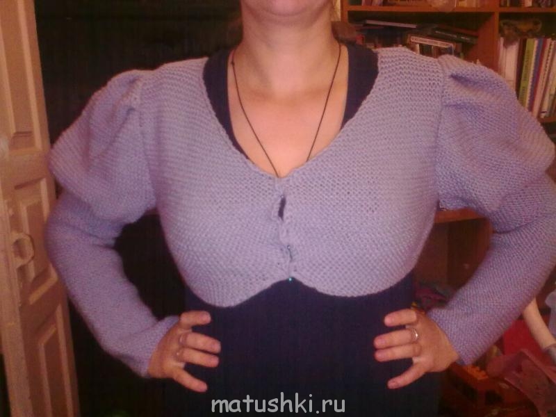 1. Связала болеро, осталось обвязать крючком и вместо иголок пришить пуговицы.