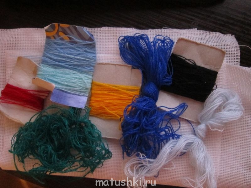 Ласка, отлично, давайте начнем. Для сначала подготавливаем канву и нитки (лично я просто возьму нитки из своих запасов, постараюсь подобрать похожие цвета)