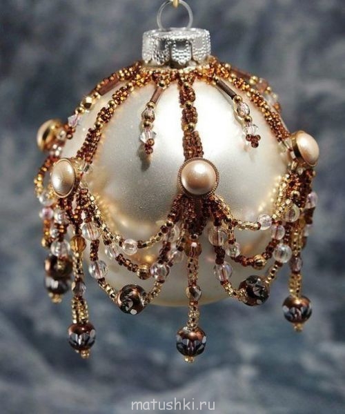 Ева, очень красиво! Интересно, бисер крепится к шарику на клей?