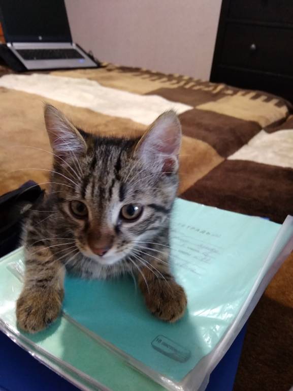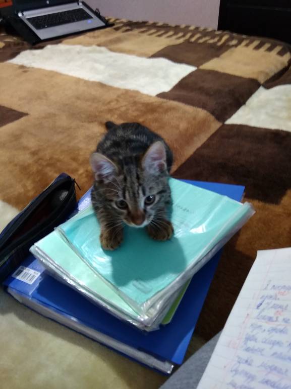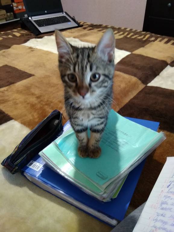 Такой вот у меня помощник появился: только тетради выкладываю - он тут как тут