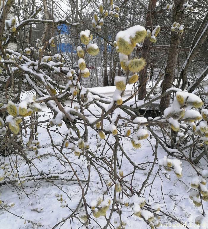 В ночь снегом засыпало. День солнечный, растаяло много, но очень холодно