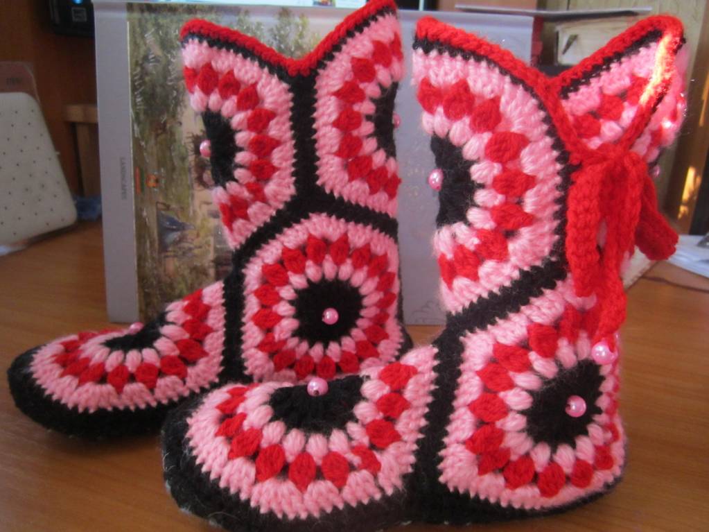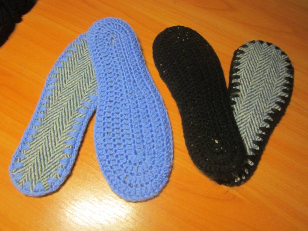 Войлочная стелька. Обвязанной стороной положила внутрь, так как она очень скользкая, а снаружи пришила вырезанную из драпа стельку, получилось довольно плотно