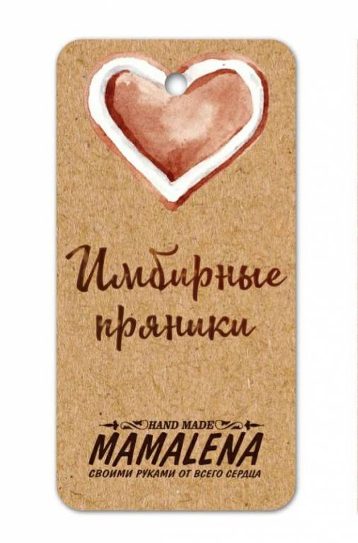 У меня есть своя марка - мамалена, под которой идут все мои работы. (с этим логотипом у меня визитки, наклейки и заказала бирочки)