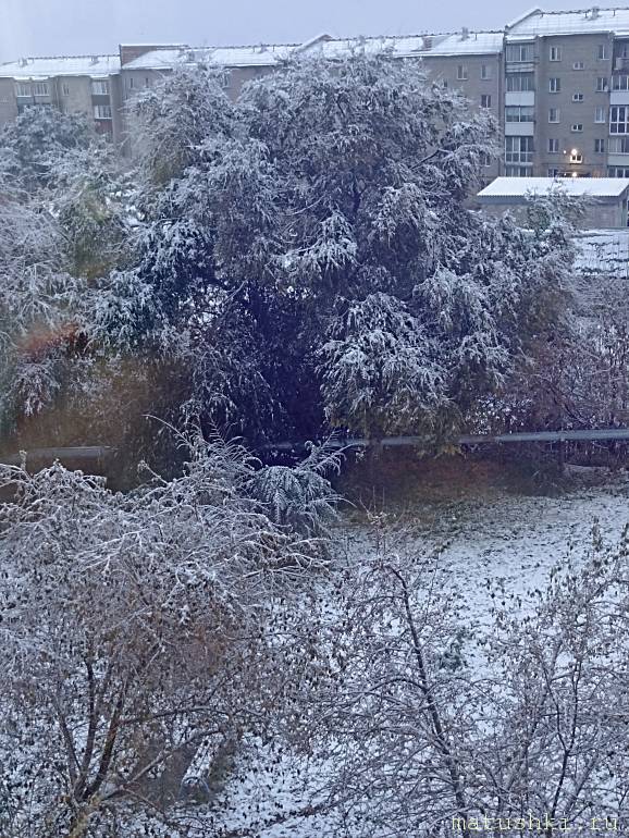 Давно заметили, что у нас осень начинается в августе (становится прохладно, идут дожди, желтеют деревья), в сентябре холодает и все листья облетают и вот октябрь радует снежком..