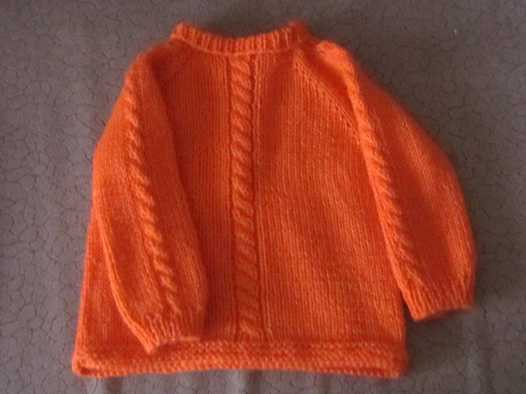 Оранжевая наоборот, сверху, с рукавом-реглан, сзади шнуровка.Пенелопа:Рукава вязала отдельно, это единственная деталь в кофте, где есть шов. От пройм уже по кругу, на длинных спицах.