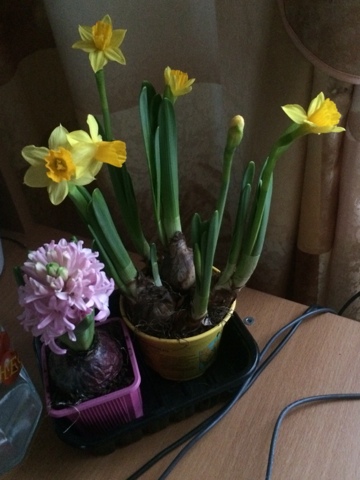 Из горшков не высаживала,но нарциссы и гиацинты вроде уличные растения.