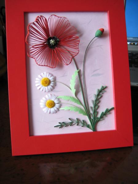 Ромашки не хотят лезть в рамку, зато очень быстро и легко сделала мак.Ну и ромашечек ему, чтобы не скучал