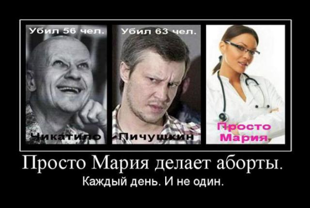 Слишком кровавая... И потом, в этом я уже убедилась на собственных родственниках,там где деньги,там заинтересованность.Если доктор за один аборт получает в карман 200-300 грн,а в месяц делает их несколько,то слова типа:"зачем вам в вашем возрасте да с вашими болезнями еще один?" уже на автомате вырываются...Если бы одну мою родственницу послушали аж три моих хороших знакомых,то у меня не было бы еще одного крестника, у моего кума не было бы племянницы,а моя подруга не родила бы третьего...Потому,что мой крестник уже замер и надо было делать аборт, срочно, у кума сестра с поликизтозом почек забеременела,с таким вообще рожать нельзя,деточка срочно аборт,а у подруги просто третий, зачем он вообще нужен в возрасте 33 лет,тут старших поднимать,надо...И дожимает, ласково так дожимает до последнего,чтобы деньги срубить...Потому ,видимо,верующих так и ненавидит,что от них приработка не добъешься.Olga_Aleksandra:для них это не более чем работа. при том которая может кормить их семью.