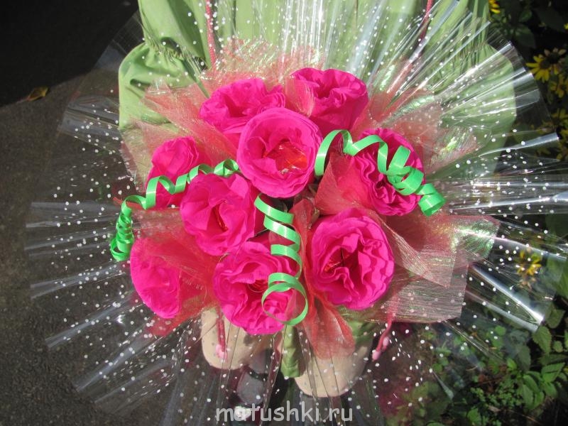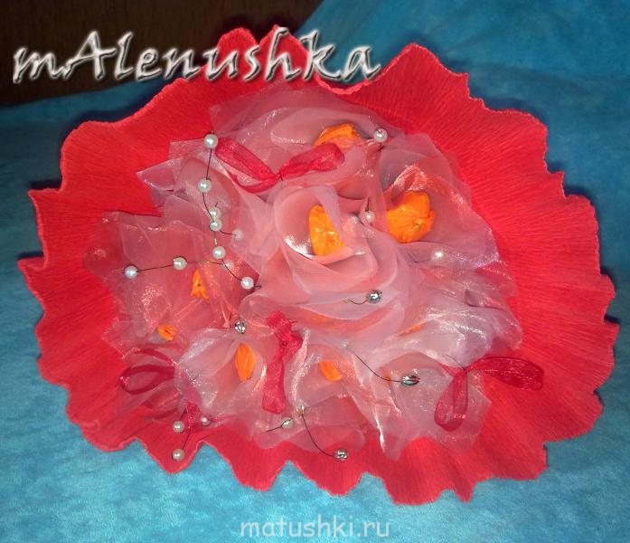 из расчета на один букет самое дорогое - конфеты. Гофра на средний букетик укладывается буквально в 20 рублейТатоша:И у меня небольшой вопрос - много тратишь на материал для букета? Ну на конфеты, бумагу, обёртки и т.д.?