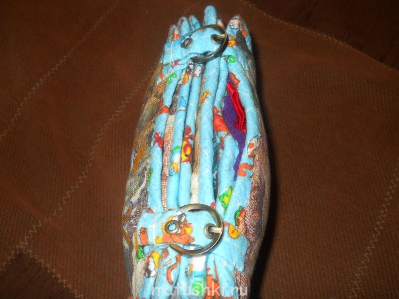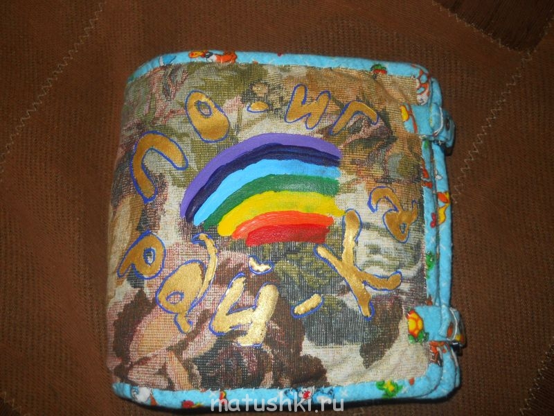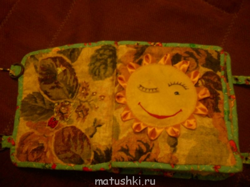 Наполнитель в страницах -синтепон, окантовка и ремни застежки- фланель. Все проклеивала полиэтилленом. Бейка получилась толстою, пришивала руками.