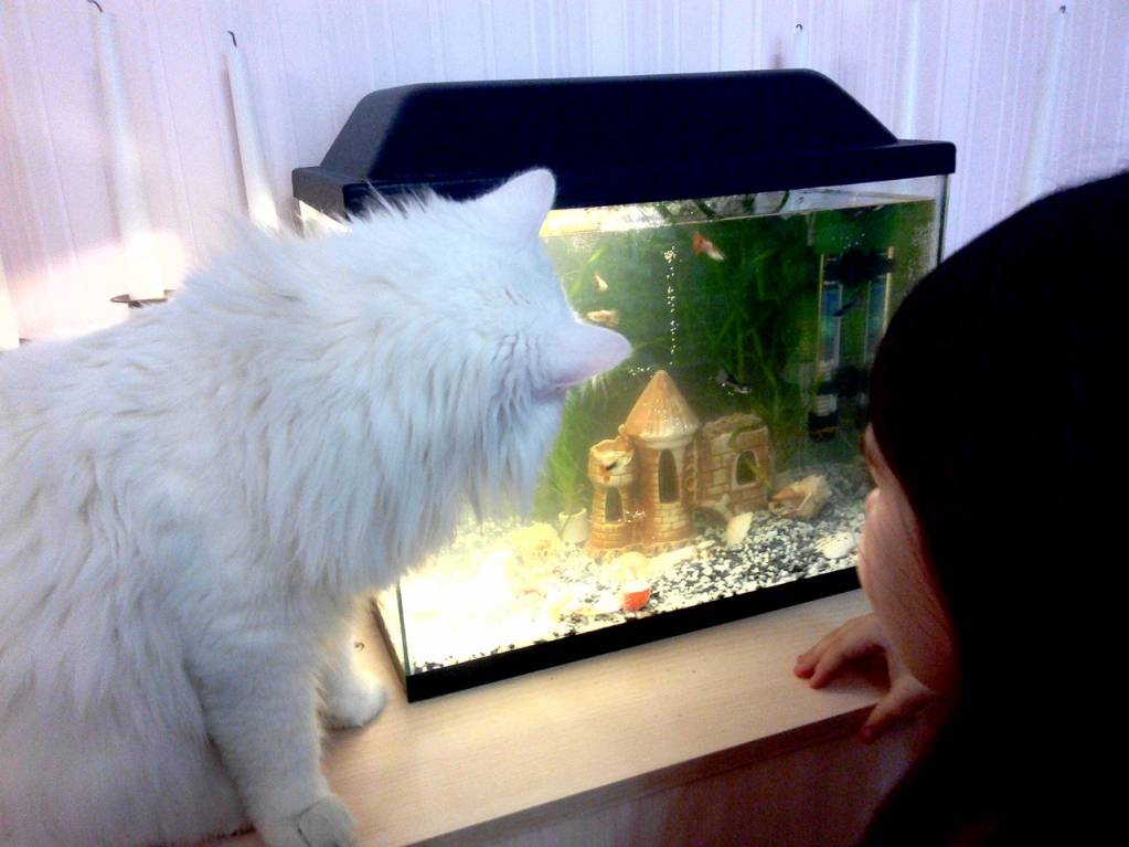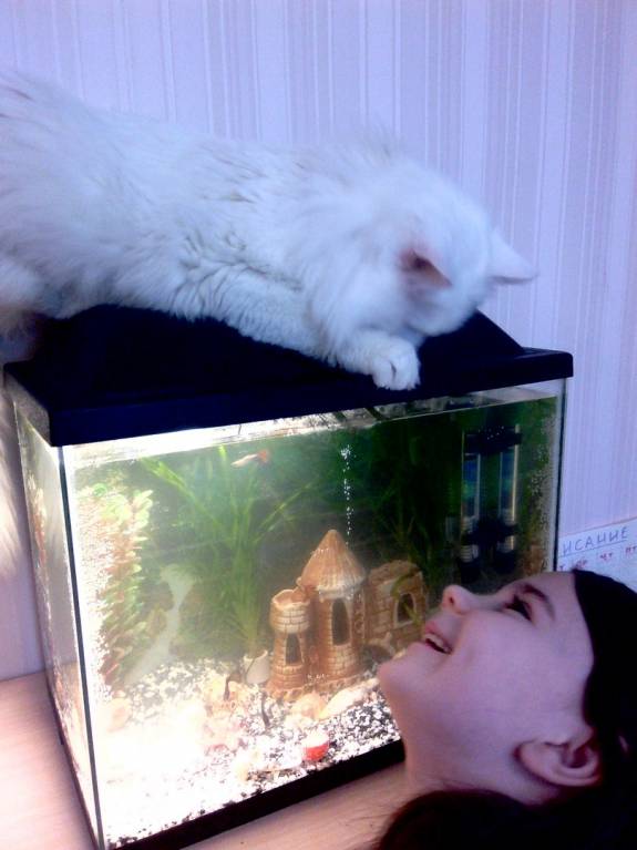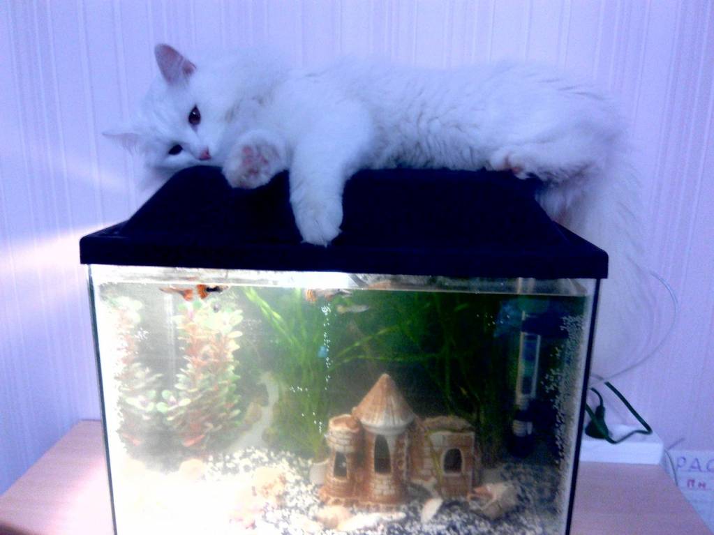 Красиво, успокаивающе. Сидим, любуемся. Одна уже рыбка сдохла.