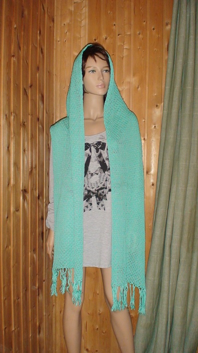 У меня сохнут два палантина из 100% хлопка. Один нежно зеленый, второй пастельно- лиловый. Палантины двухсторонние, узор с обеих сторон, можно носить и так, и так. Пряжа проверенная, не линяет, не садится, не растягивается, не теряет форму, и при этом они не плотные, ажурные. И что очень важно - они очень красиво драпируются и не скользят на голове. Их не придется бесконечно поправлять. Размер палантинов точно не скажу, но около 240 на 50 см + кисти по 25 штук с каждой стороны (с коротких сторон). Как высохнут - скажу точные размеры. Так что если есть желающие - к концу недели выложу фото. Стоимость 2000 рублей + пересылка по России 250 рублей.