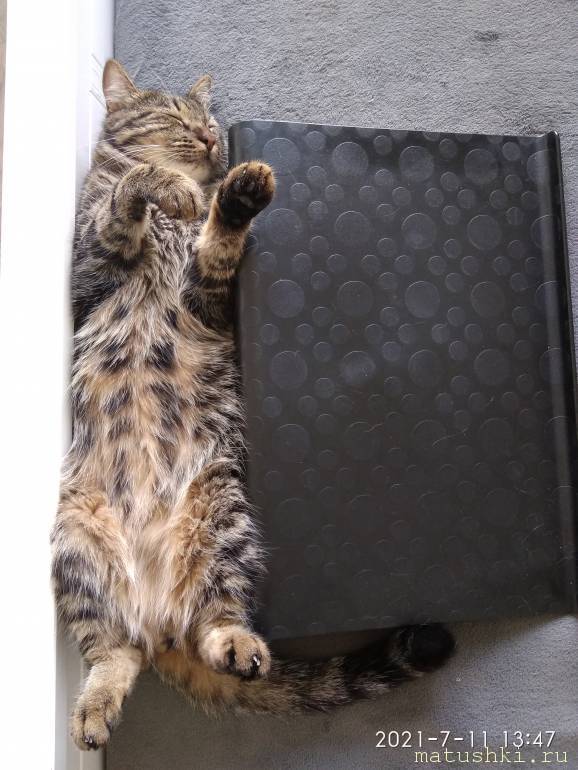 Не просто ковриком на полу лежит, но старается найти место похолоднее.