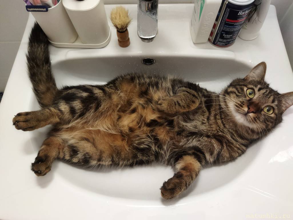 Или раковина маленькая, или котейка подрос.