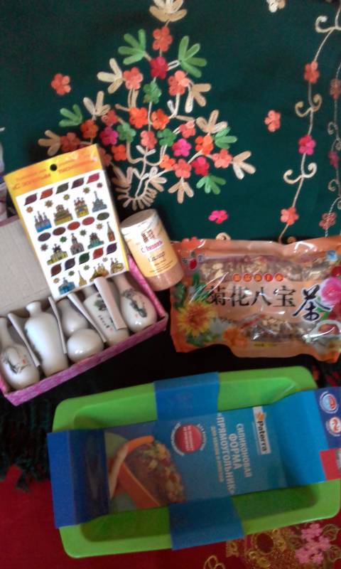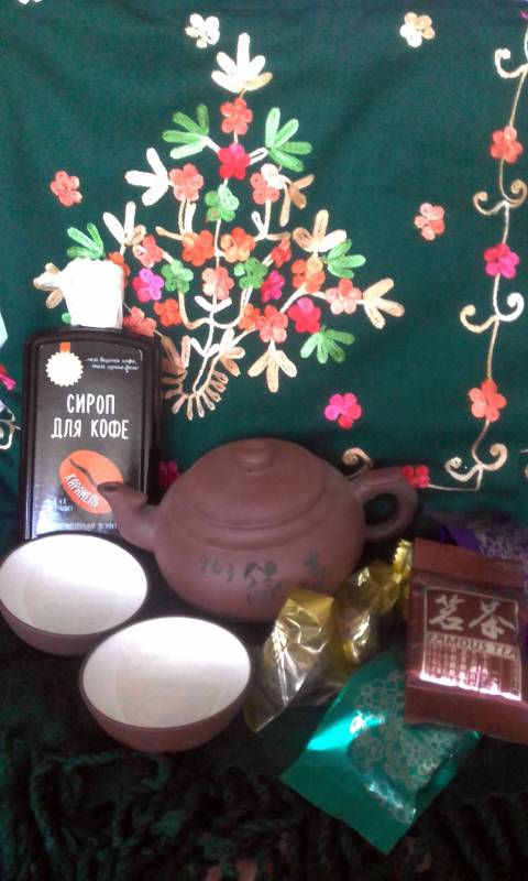 Чайничек глиняный с чашечками – моя голубая мечта, всё ходила и облизывалась в магазинах. Куча вкуснющего тайского чая, сироп к кофе – пойдут в расход уже сегодня же! Легендарная красная льняная салфеточка, она потрясающая!! Мама её заныкала, и «гениально» шутит, что она мне в приданое пойдёт