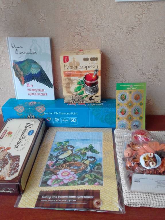 , Краснодарский чай и тортик. И самый главный подарок, Катя собрала нам алмазку, образ Божьей Матери