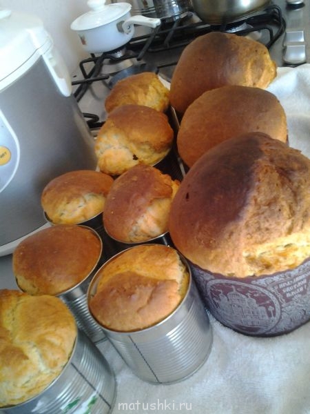 Куличики такие заглядение, из форм они не повыскакивали, но я им не дала хорошо расстояться после того, как тесто по формам раскидала и они у меня где вровень, а где чуть выше формы.