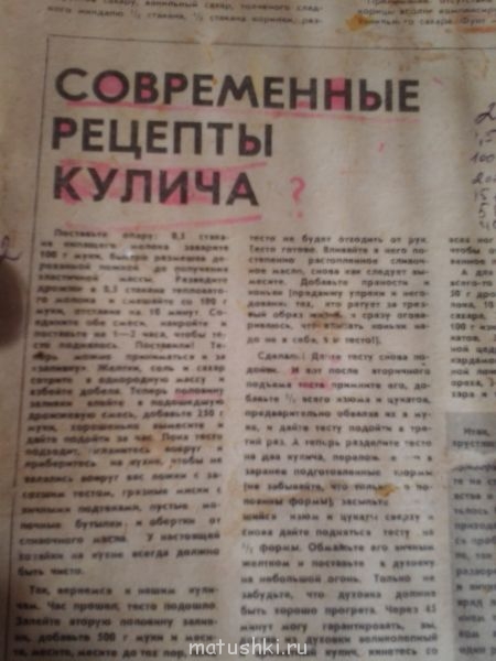 Готово! Ну, конечно наврятли "тяжелые"...Вон как поднялись. Не опять не то...надо чтоб оне плотные были, туго поднимались, как из этой книжки (пекла один год, лет 10 назад..очень вкусны получились) но все хочется новенькие попровывать. В итоге на следующий год(живы будем и если Бог даст) буду печь по старому рецепту. (плохо видно, могу переписать)