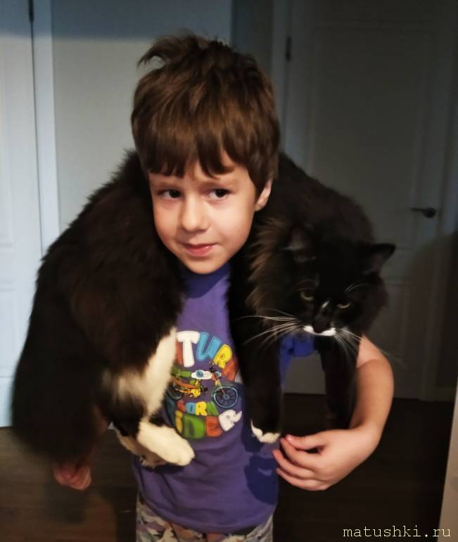 Сейчас все позади, в новой шубке Космос нежится на диване, играет в подвижные игры и спит рядом с ребенком.