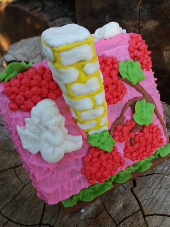 Цветы и ангелочки сделала из мастики с помощью молдов, а листики с помощью обычной насадки