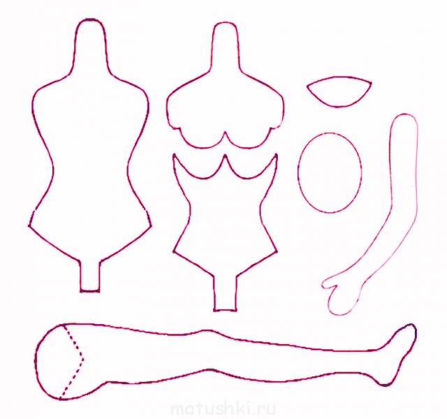 Пока нашла выкройку Винтажного Ангела...., когда надо быстро,не получается.Их можно распечатать на листе А4 и по ним шить, я использую эту выкройку и добавляю припуски. Получается хороший размер куклы. Но это дело вкуса. А голову взять у тряпиенсы, я лист с выкройками уже добавляла, но посмотреть соответствие размеров.