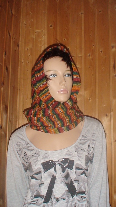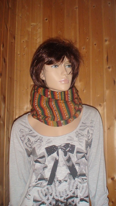 размер: высота 46 см, длина по кругу 120 см (в готовом виде 60 см). Можно носить как шарф-хомут в один оборот и в два оборота. Можно накинуть один оборот на голову.