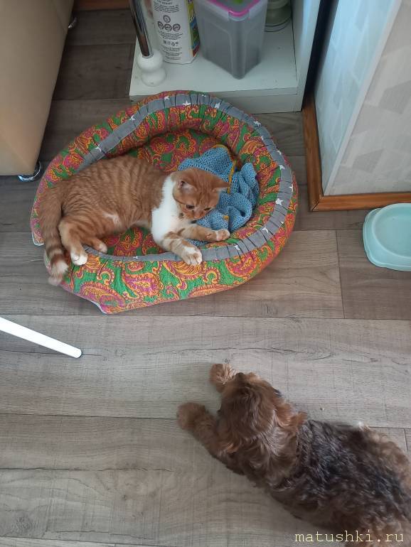 , лежанку для собаки сделала, а котейка решил, что для него