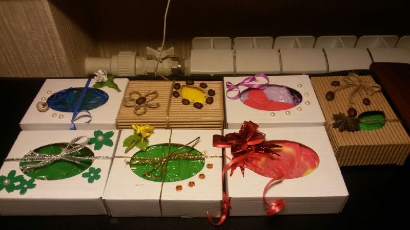 Бывают открытки, декупажные свечи и много всякой красоты - кто что умеет:) Вырученные финансы идут на содержание храма.