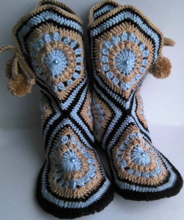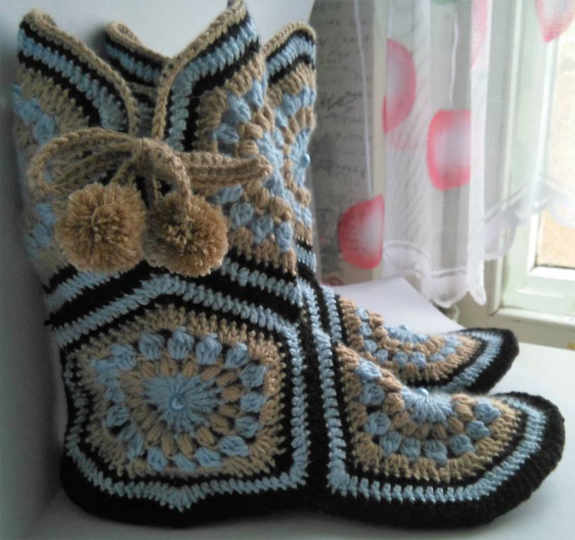 Давно не вязала крючком, да по сути ничего толкового и не вязала, а тут вдруг набрела на вязаные тапочки-сапожки и решила попробовать. На ютубе есть мастер Кристина Богданова, по ее мастер-классам связала такие вот подарочки своей сестре и ее детям, моим племянникам.